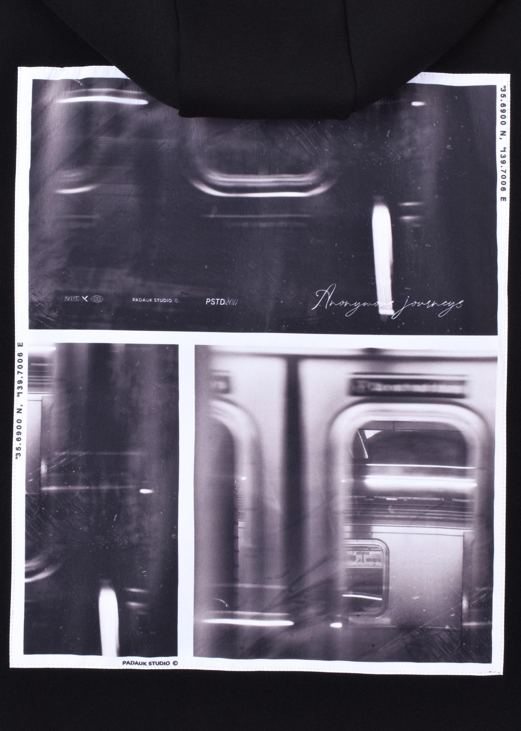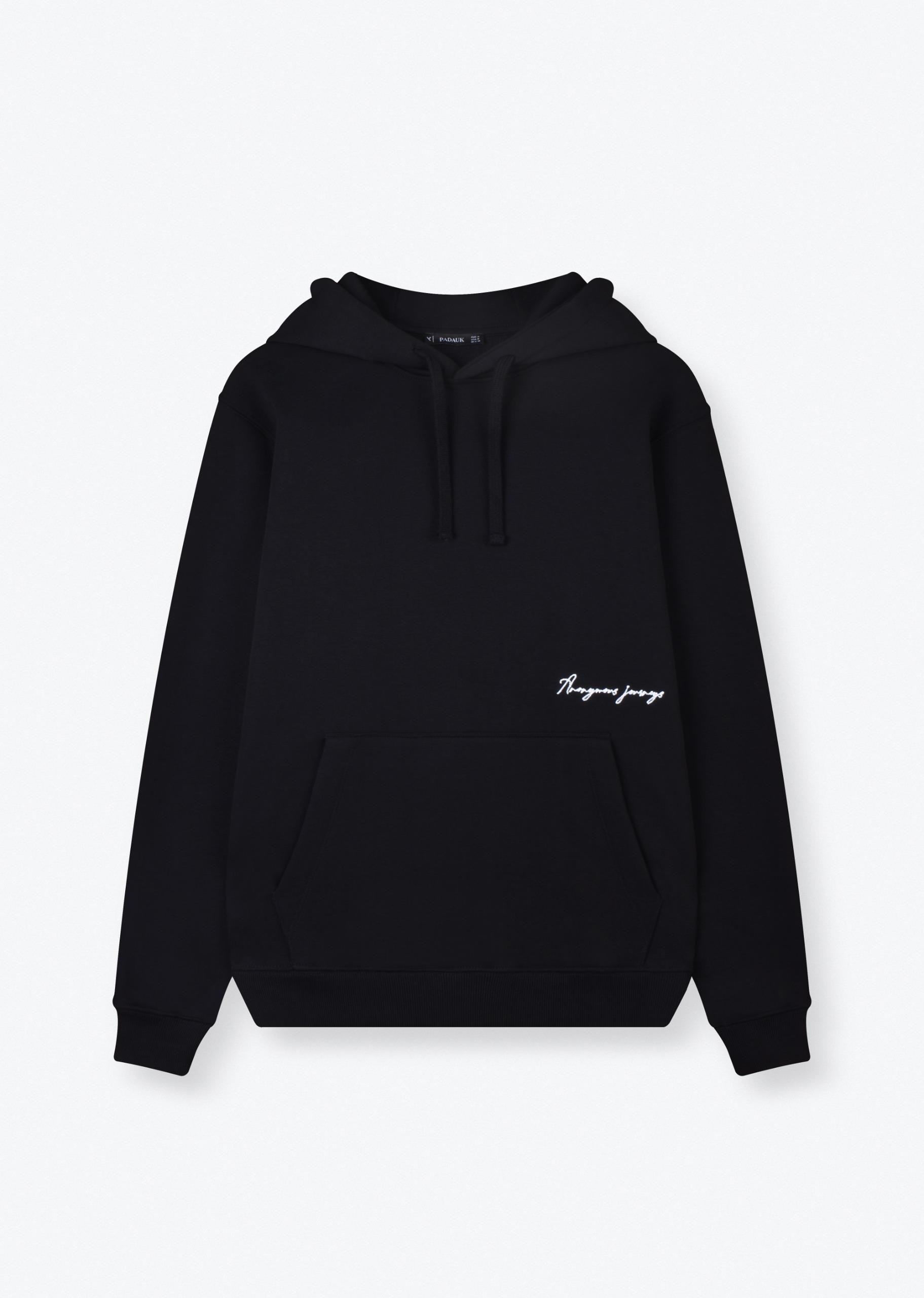 Adoptez un style urban moderne avec ce hoodie noir au design unique. À l’avant, une broderie minimaliste “Anonymous Journeys” apporte une touche élégante et discrète. À l’arrière, un grand visuel graphique inspiré de l’univers urbain donne au hoodie un look streetwear fort et original.
