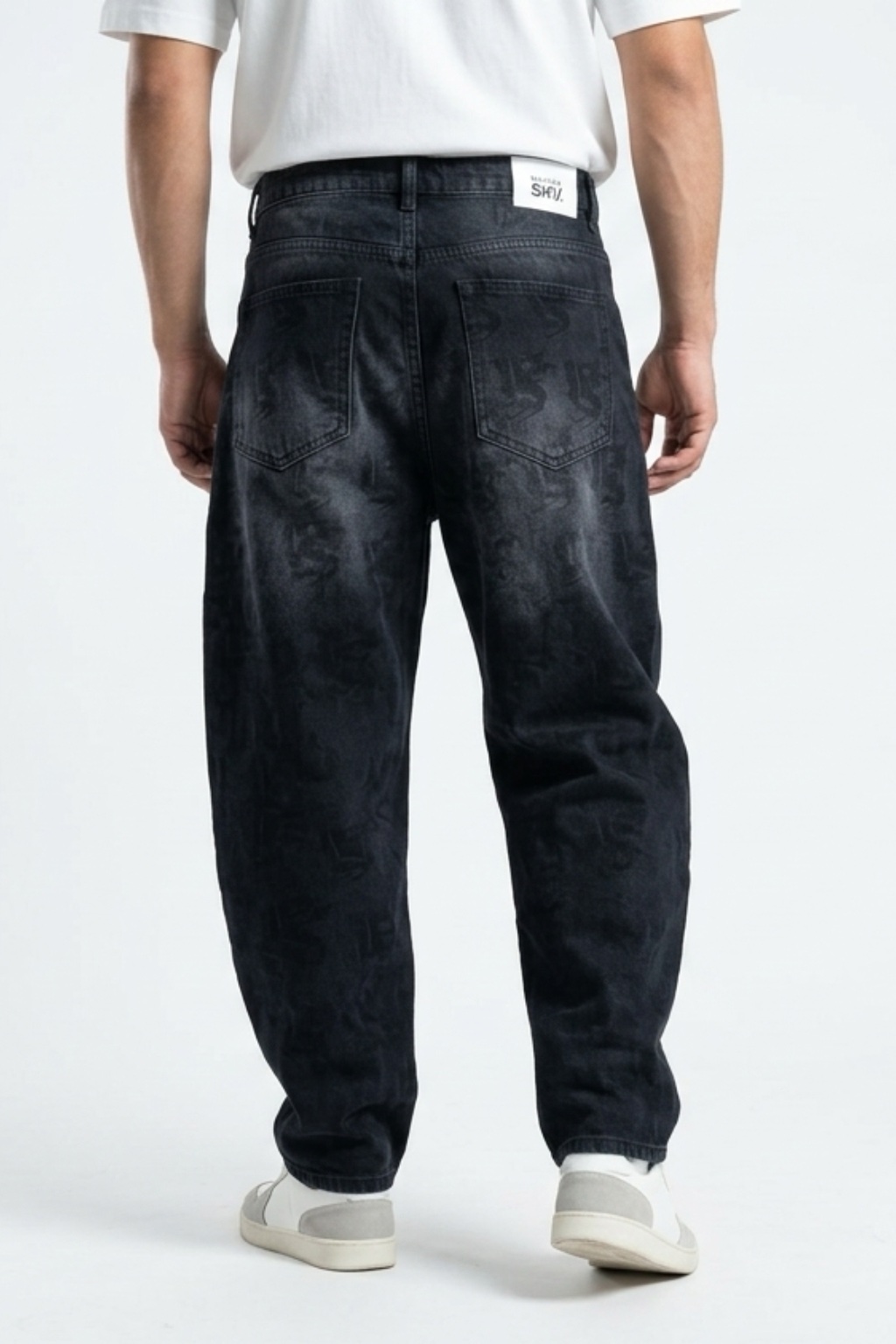 Jean ballon noir imprimé – coupe oversize