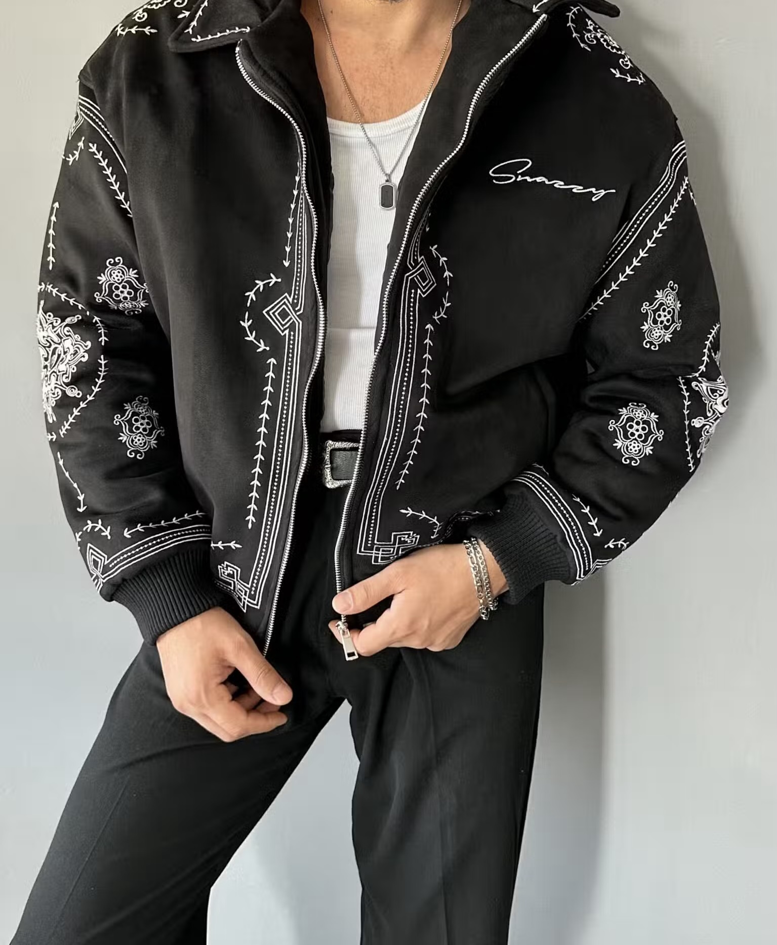 Apportez une touche d’authenticité et de caractère à votre tenue avec cette veste artisanale brodée.